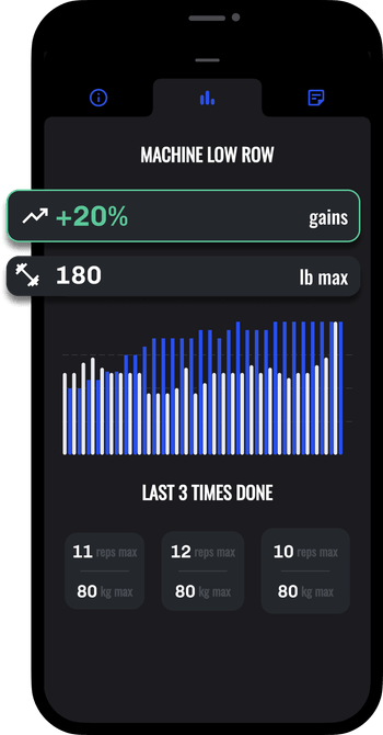 See your historical reps, sets, and weight in charts