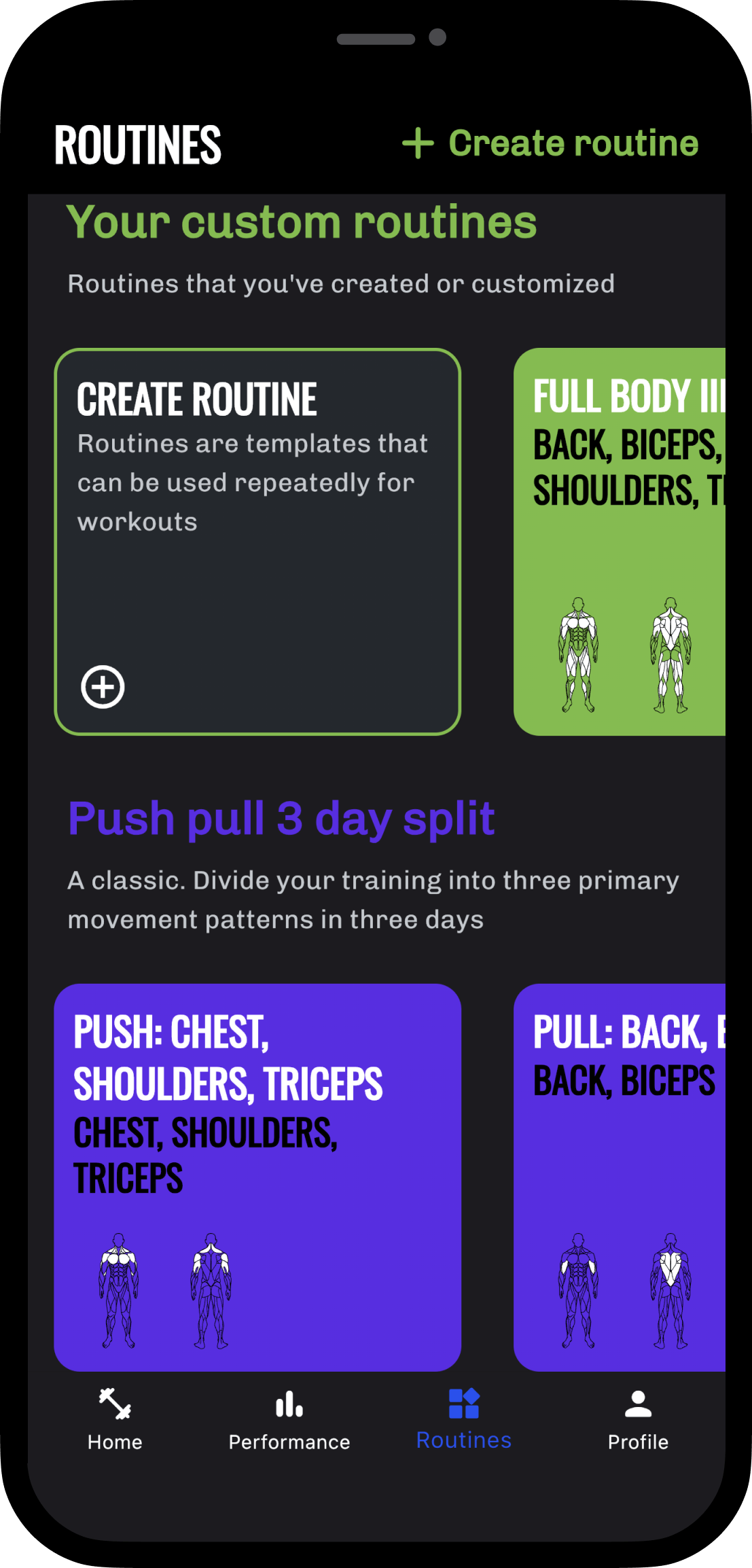 Whether you’re just starting out or fine-tuning your training, Legend helps you build routines that adapt to your goals. Use pre-made plans or craft your own — and update them as you grow stronger.