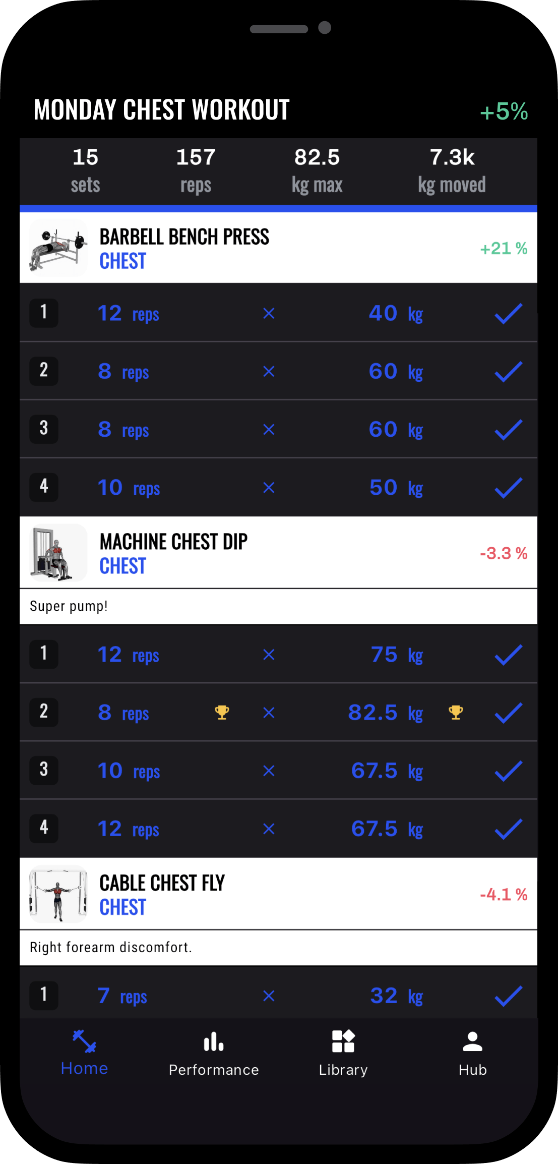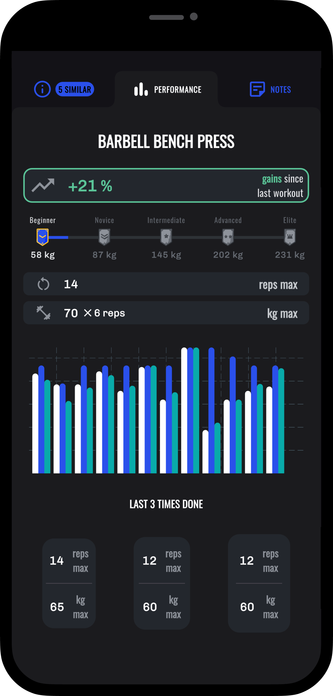 See exactly how today’s performance stacks up. Legend remembers your previous lifts, suggests targets, and helps you apply progressive overload to maximize gains, in every session.